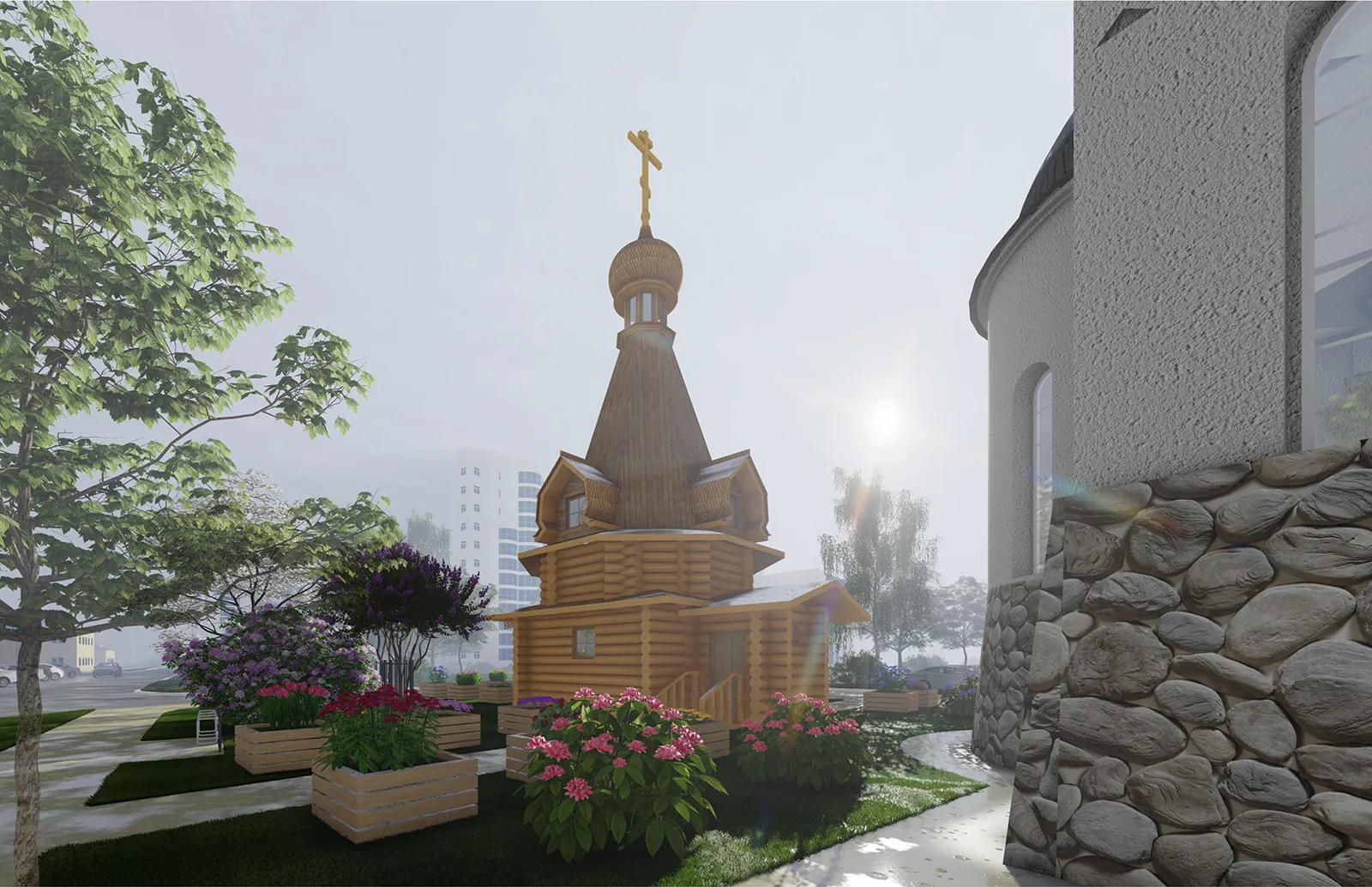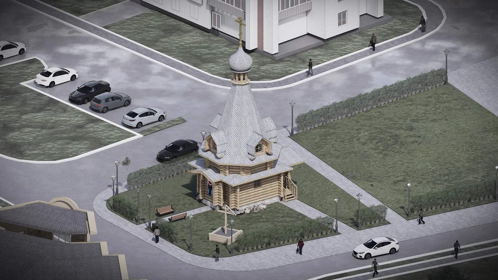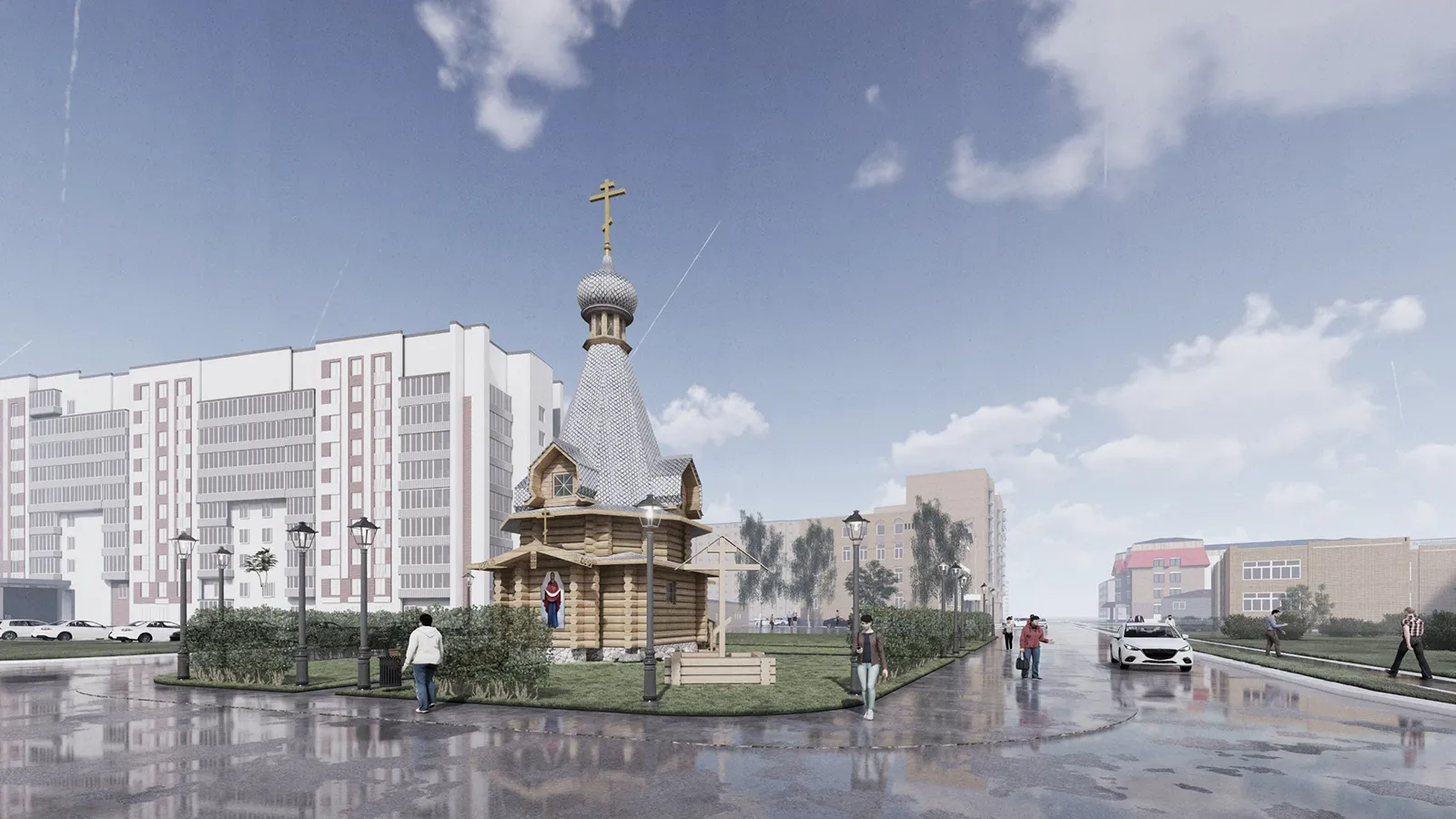 Часовня будет небольшой, шатровой. Ее сруб уже сложили из бревна по традиционной северной русской технологии рубки «в чашу» по проекту архитектора Михаила Мамошина. В будущем, когда соберутся достаточные средства, рядом с часовней возведут просторный каменный храм Покрова. Строящаяся сегодня часовня – «точка роста» церковного прихода: в ней будут совершаться молебны, собираться люди, формироваться община.