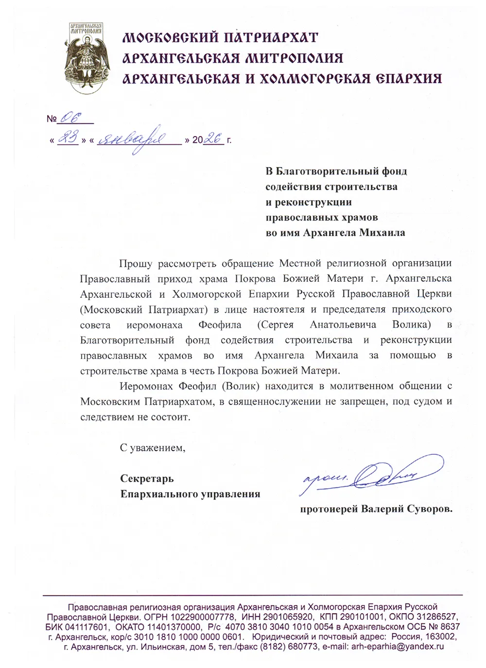 БЛАГОТВОРИТЕЛЬНЫЙ ФОНД СОДЕЙСТВИЯ СТРОИТЕЛЬСТВУ И РЕКОНСТРУКЦИИ ХРАМОВ ВО ИМЯ СВЯТОГО АРХАНГЕЛА МИХАИЛА