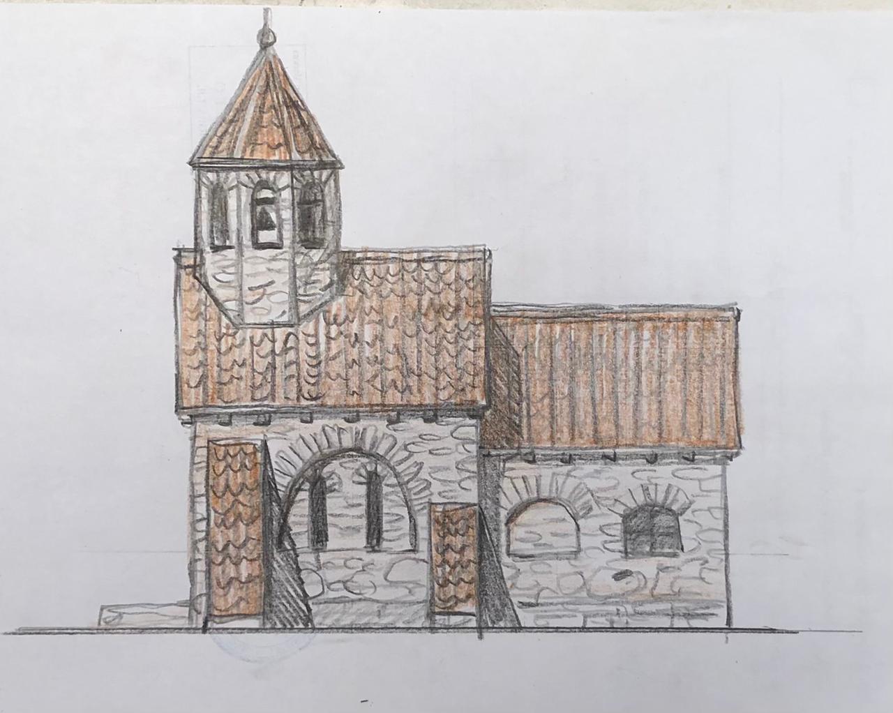 Строительство храма было начато в 2019 году. Сначала планировалась, что это будет небольшая, 5х4 м, часовня. Но вскоре пришло понимание, что в честь прп. Гавриила надо строить полноценный храм с алтарем, где будет совершаться Божественная Литургия. Храм будет достаточно лаконичным по своему убранству, и в то же время, самобытным. Конический купол в духе церковного зодчества Грузии, стены из камня, черепичная крыша, контрфорсы. Благодаря осуществленному на первом этапе сбору, фундамент часовни был достроен до размеров храма. Затем строительство продолжилось: стены, свод, крыша.