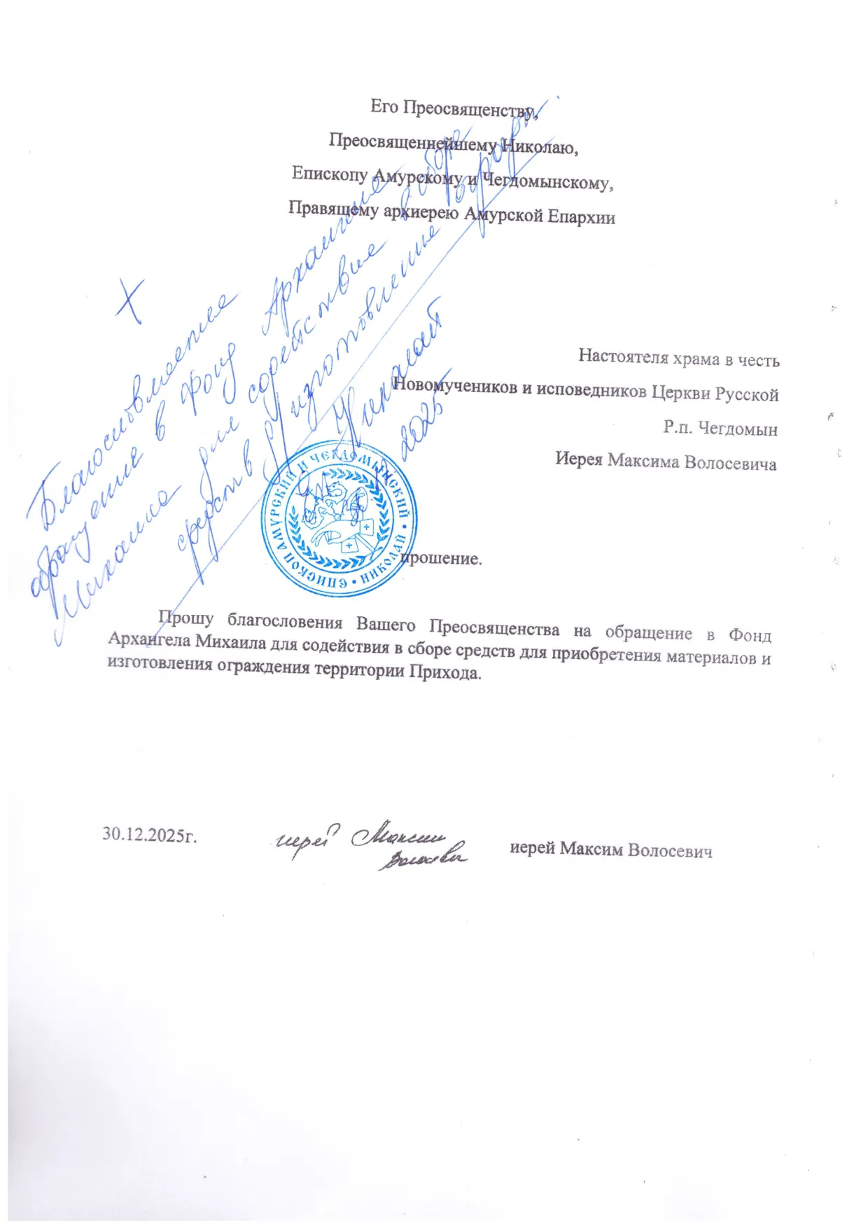 Цель сбора: приобретение ограды для храма (аванс).