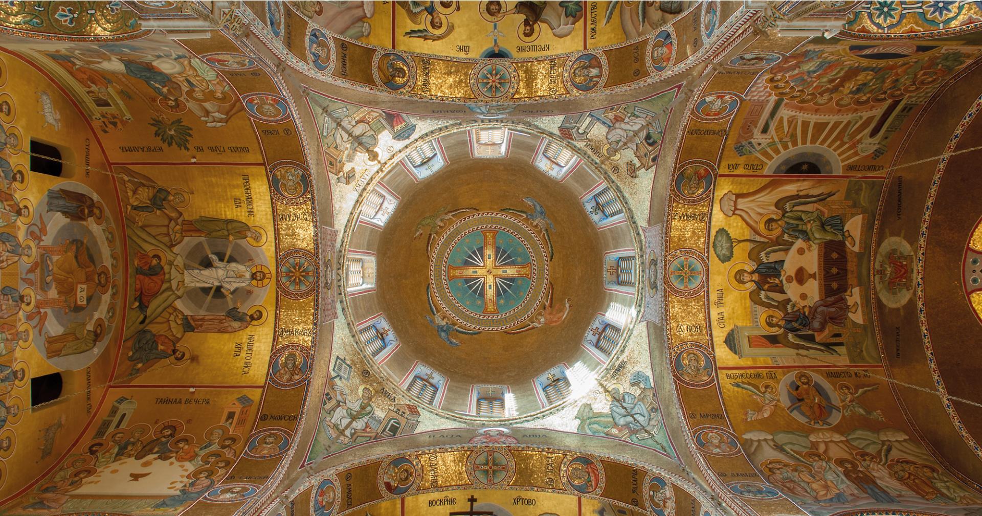 Храм, стены которого полностью выложены мозаикой, — мечта всех церковных художников-монументалистов. В декорации верхнего храма использованы две традиционные техники: мозаика и роспись.