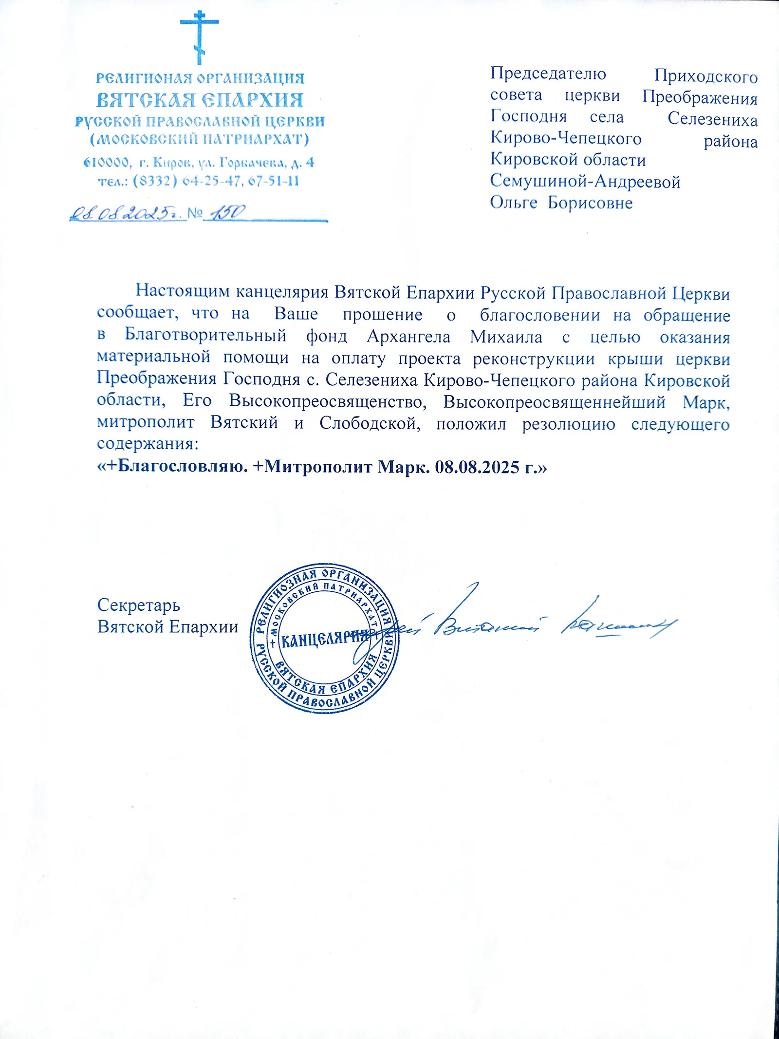 Помочь храму Преображения Господня в с. Селезениха можно онлайн на сайте или отправив СМС на короткий номер 3434 с текстом «СЕЛЕЗЕНИХА» и через пробел указав сумму (Например: СЕЛЕЗЕНИХА 500).