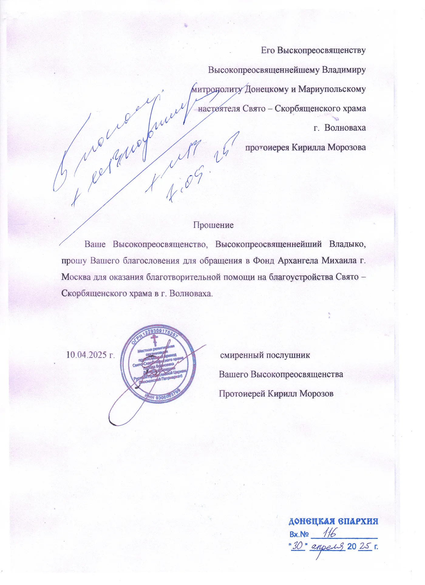 Помочь Свято-Скорбященской церкви в Волновахе можно онлайн на сайте или отправив СМС на короткий номер 3434 с текстом «ВОЛНОВАХА» и через пробел указав сумму (Например: ВОЛНОВАХА 500).