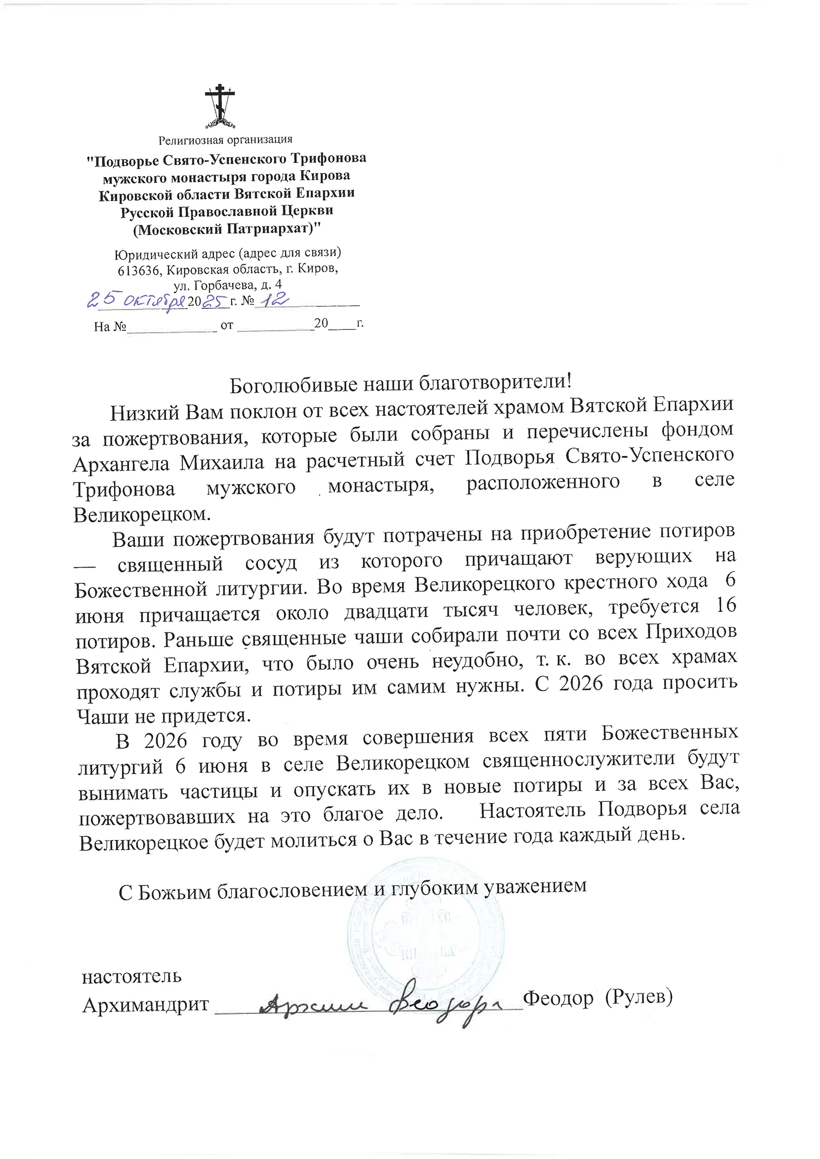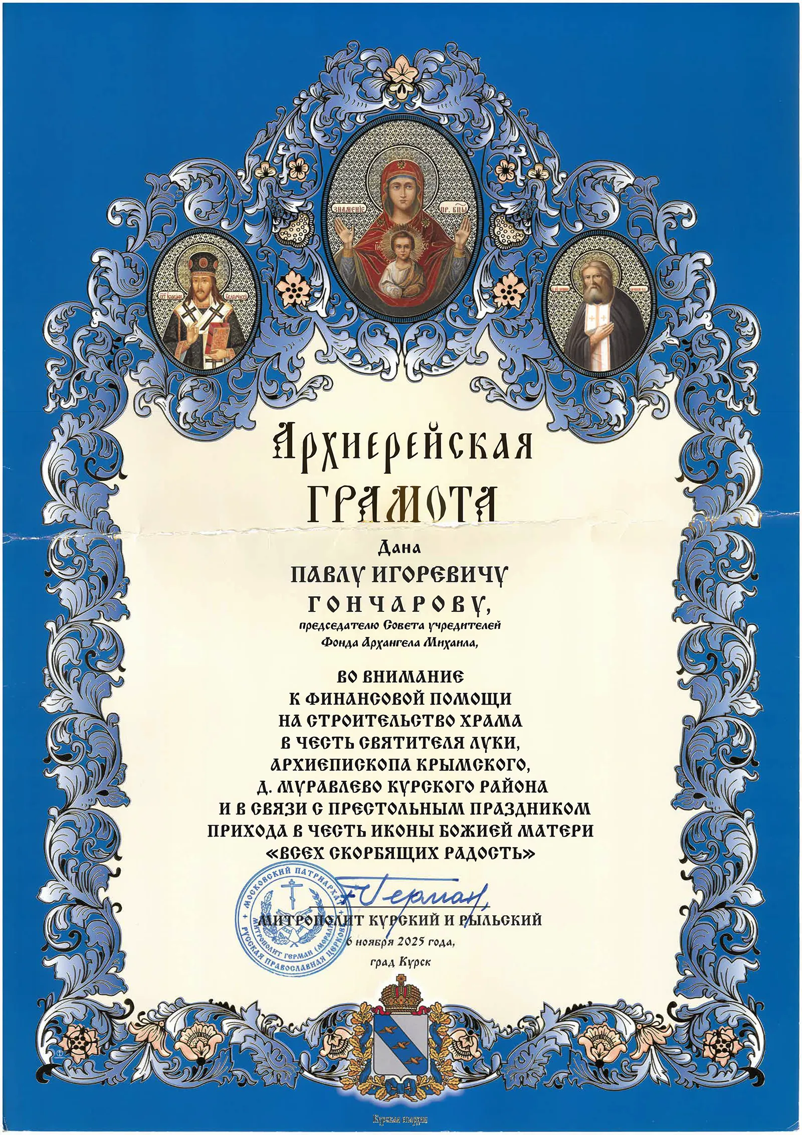БЛАГОТВОРИТЕЛЬНЫЙ ФОНД СОДЕЙСТВИЯ СТРОИТЕЛЬСТВУ И РЕКОНСТРУКЦИИ ХРАМОВ ВО ИМЯ СВЯТОГО АРХАНГЕЛА МИХАИЛА (Председатель Cовета учредителей: Гончаров Павел Игоревич),