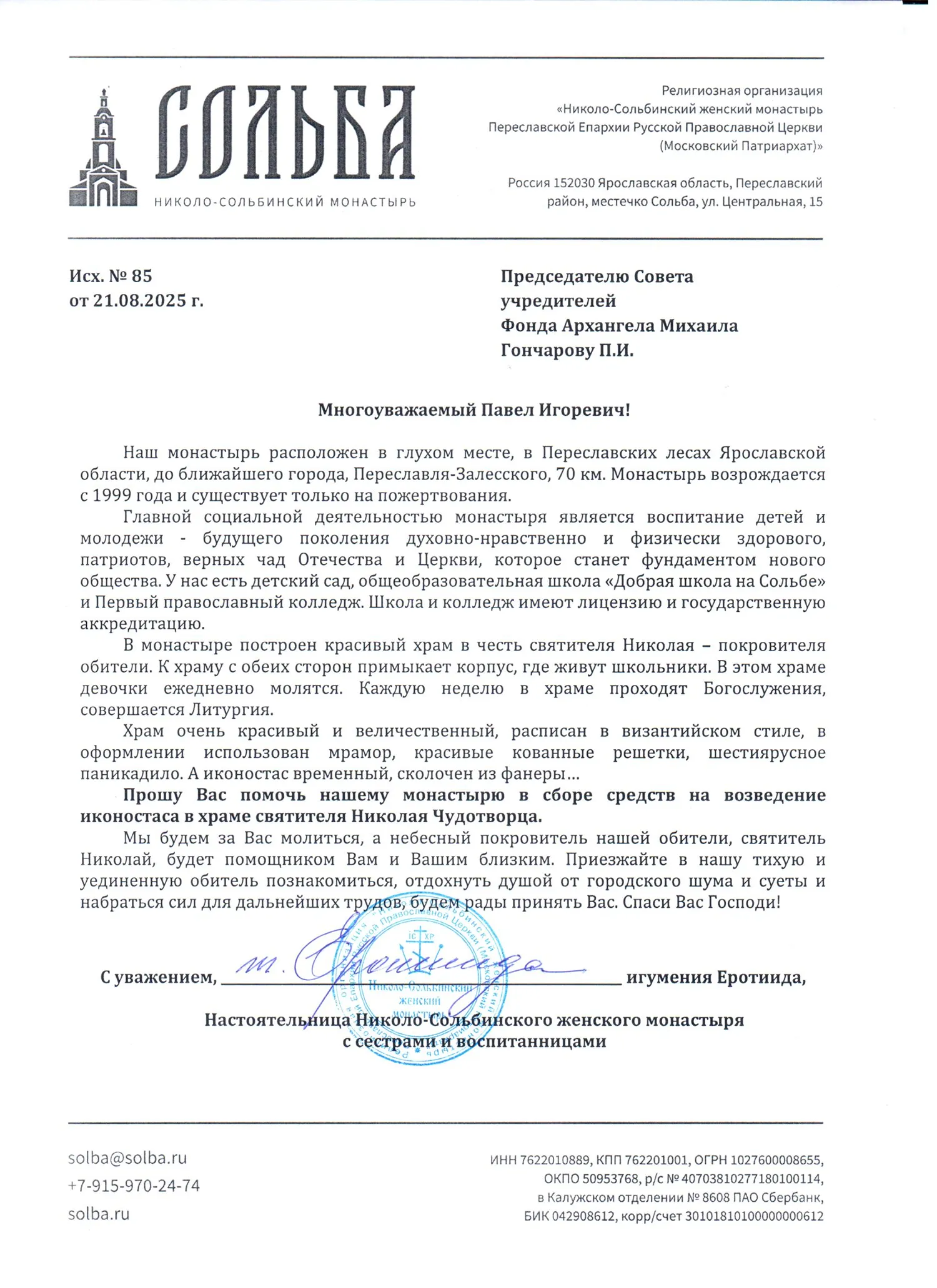 БЛАГОТВОРИТЕЛЬНЫЙ ФОНД СОДЕЙСТВИЯ СТРОИТЕЛЬСТВУ И РЕКОНСТРУКЦИИ ХРАМОВ ВО ИМЯ СВЯТОГО АРХАНГЕЛА МИХАИЛА (Председатель Cовета учредителей: Гончаров Павел Игоревич),