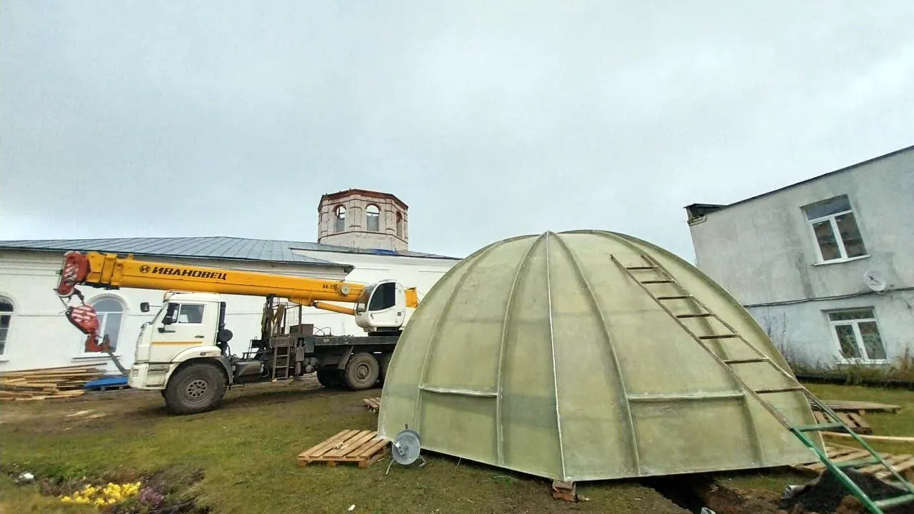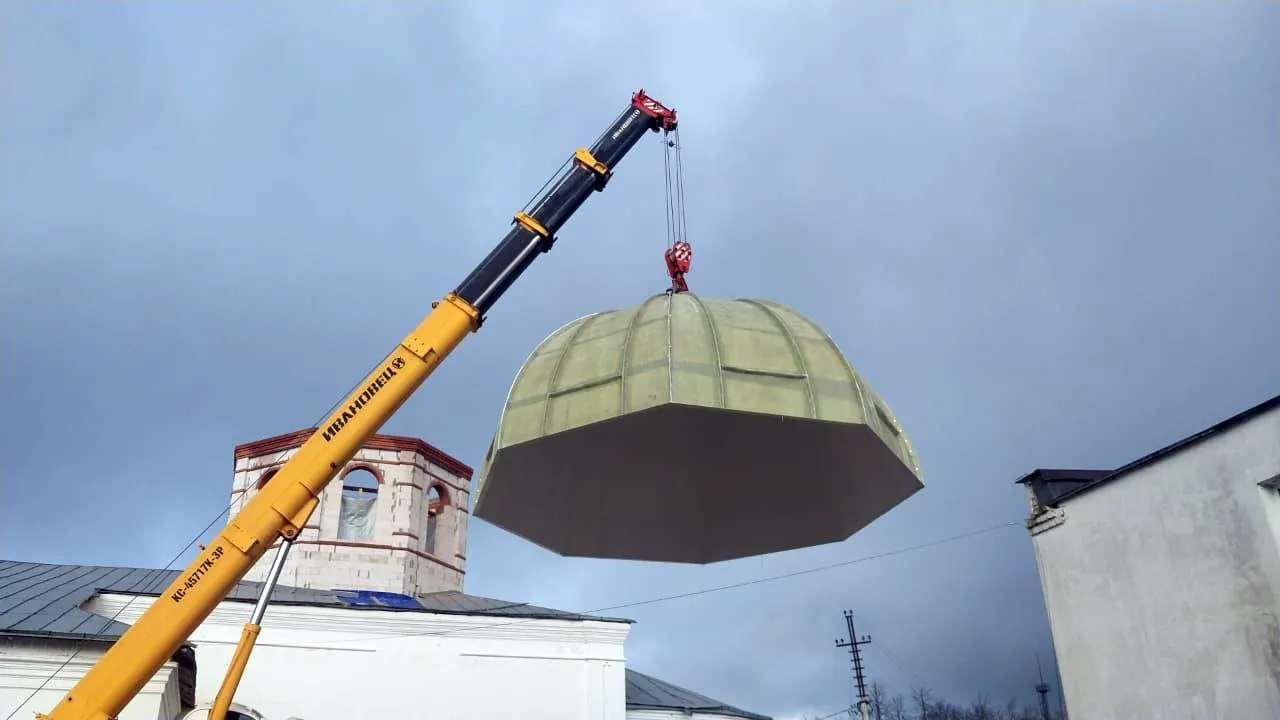 Мы идем к цели поэтапно. Для начала собрали средства на газобетонные блоки и скрепляющий их клей. С их помощью реконструируется восьмерик храма – надстройка на крыше, которая переходит в шатер с куполом. Затем мы осуществили сбор на второй этап воссоздания – изготовление внутреннего свода в шатре храма, того символического «неба», которое будут видеть люди, находящиеся внутри. В прежние времена церковные своды долго и кропотливо выкладывали из кирпича или камня. Современные технологии позволяют целиком изготовить свод на предприятии из стеклокомпозитного материала, а затем смонтировать его на объекте. Такой свод легче обычного – а значит, помимо экономии времени и средств, технология имеет еще одно преимущество: уменьшение нагрузки на несущие конструкции (фундамент, стены) храма. Согласитесь, для старинного здания это немаловажно! И наконец, пришло время «собрать конструктор»: выполнить строительные работы. Они начались летом 2025 года и продолжились осенью! Средства, собранные на реставрацию храма, стали менять его облик, а вместе с ним – и облик Гаврилова Посада, на главной площади которого стоит храм Архангела Михаила! Над церковным зданием начал «расти» восьмерик! А на заводе тем временем изготовили свод. Наше время полно неожиданностей, которые уже сделались ожидаемыми: пока шли работы, все подорожало. Поэтому нам пришлось собрать дополнительные средства, чтобы оплатить создание свода. И наконец, мы выходим на финишную прямую: открываем сбор на реконструкцию шатра. Он будет восьмигранным, с треугольными закомарами в основании и металлическим кровельным покрытием. Следом за шатром пойдет главка с крестом и барабаном – и то, что казалось несбыточной мечтой, станет реальностью!