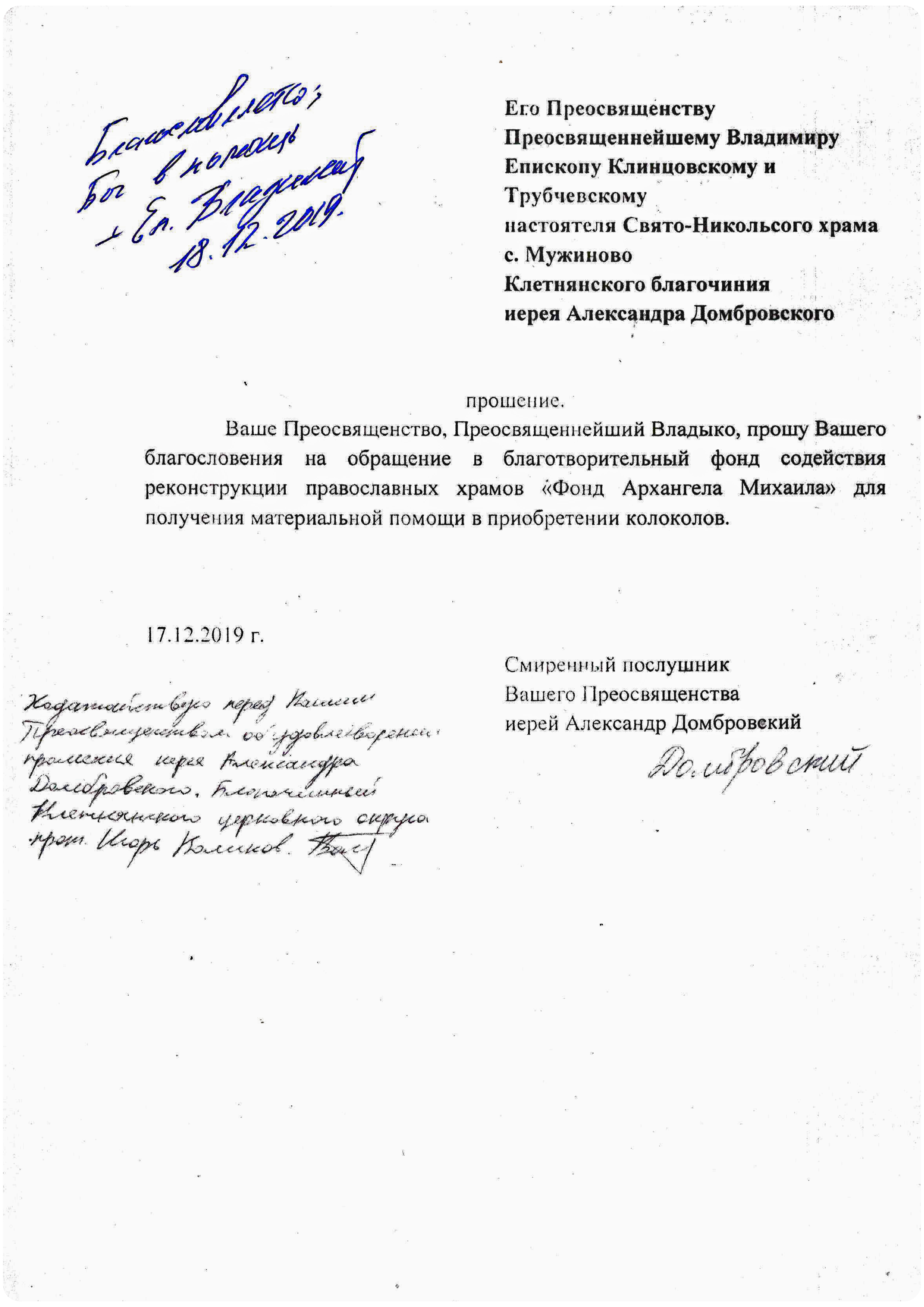 - Благословение Епархии на обращение в Фонд