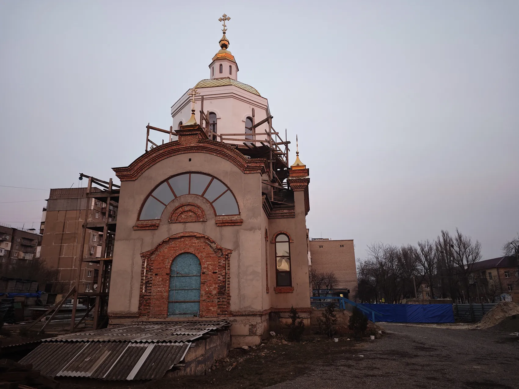 Боевые действия на Донбассе приостановили строительство Свято-Введенского храма, но службы в нем – еще не обустроенном до конца – совершаются регулярно. В годину испытаний верующие особенно остро ощущают нужду в помощи Божией, а многие из тех, кто в мирное время не задумывался о вечном, начинают искать поддержки и защиты в молитве.