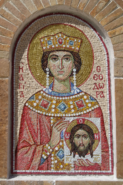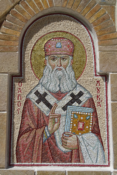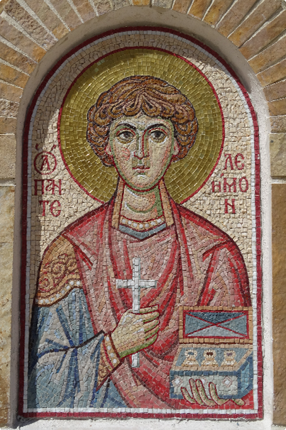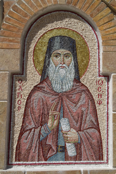 Восемь образов святых, выполненные в технике мозаики, встречают приходящих в обитель людей. Иконы заняли заранее подготовленные для них места на монастырской стене. Теперь любой православный человек может обратиться с молитвой к преподобномученице Параскеве Римской, святому великомученику и целителю Пантелеимону, праведной Царице Феодоре, святителю Николаю Чудотворцу, мученице Керкире, святителю Луке Крымскому (Войно-Ясенецкому), преподобному Иосифу Критскому, святителю Спиридону Тримифунтскому.
